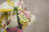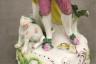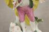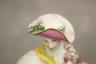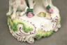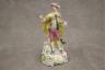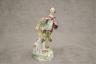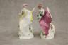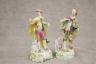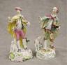 PAIR GERMAN POLYCHROMED PORCELAIN FIGURES MODELED AS MALE AND FEMALE IN 18TH CENTURY COSTUMES With dogs and baskets of fruit H: 9 in. $100-150