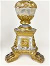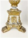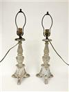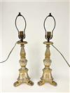PAIR ITALIAN ECCLESIASTICAL PALE GRAY AND GOLD-PAINTED CANDLESTICK LAMPS. 19th century. - Candlesticks, H: 15 3/4 in.Estimate $100-150