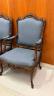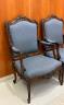 PAIR LOUIS XV STYLE CARVED AND UPHOLSTERED OPEN-ARM CHAIRS Elaborately carved frames with shells and leafy vines; slate blue textured fabric upholstered back panels, arm rests and shaped seats; nail head trim. $300-500