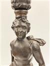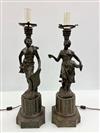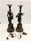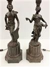 PAIR NEOCLASSICAL CAST METAL FIGURAL TABLE LAMPS. Cast as male and female on fluted socles - H: 22 in.Estimate $150-200