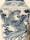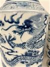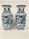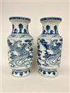 PAIR OF CHINESE BLUE AND WHITE PORCELAIN BALUSTER FORM VASES. Writhing dragon decoration. - H: 13 3/4".Estimate $200-300