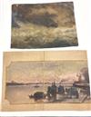 PAIR OF LATE 19TH CENTURY CONTINENTAL ARTWORKS. A pair of Austrian artworks. The harbour scene (oil on board) can be attributed to Adolf Kaufmann (Austrian, 1848 - 1916) as it has his initials lower right hand corner. The second artwork (oil on canvas) is unsigned. Unframed. - Largest artwork: 12 x 16 in. Estimate $250-350