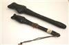 PAIR OF NORTH EAST AFRICAN WOODEN FLUTES. Patinated pair of wooden flutes from Upper Volta and Samogo (a sub-prefecture of Tougan). One is covered with snake-skin. Both flutes show signs of usage and handling. - Largest flute length is 12". Estimate $150-250