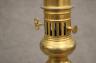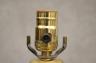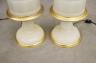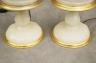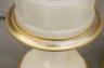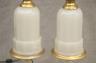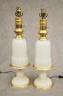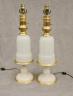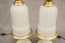 PAIR OPAQUE WHITE PANELED GLASS AND GILT BRASS ARCHITECTURAL PEDESTAL-BASE TABLELAMPS Electrified. H: 23 1/2 in., overall to bulb sockets $250-350