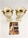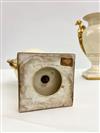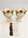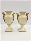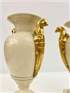 PAIR PORTUGUESE VILLA ALLEGRE NEOCLASSICAL STYLE CREAM COLOR GLAZED URN-FORM VASES WITH GILT GRYPHON HANDLES. - H: 13 in.Estimate $100-200