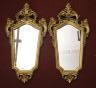 PAIR CONTINENTAL GILT-WOOD WALL MIRRORS Tapering rectangular frames with scroll-and-leaf ornamentation H: 28 in. W: 14 1/4 in. $250-350