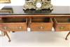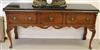QUEEN ANNE CHIPPENDALE STYLE WALNUT SIDEBOARD WITH BLACK MARBLE TOP. Rectangular top with bull-nose edge over three aligned drawers; shaped, pierced apron; cabriole legs with shell-carved knees end in pad feet - H; 36 in.; W; 71 in.; D: 18 5/8 in. Estimate $300-500