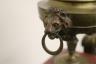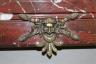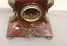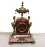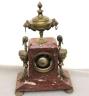 RENAISSANCE REVIVAL BRONZE-MOUNTED ROUGE-DE-FER ARCHITECTURAL MARBLE MANTEL CLOCK 19th century Urn-form finial with lion mask-and-ring handles centering urn with lift-cover; vertical rectangular marble case has mask mount and mask-and-cartouche side handles. ". H: 19 1/2 in. $250-350