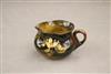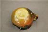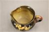 ROOKWOOD ART POTTERY HAND-PAINTED CREAMER. late 19th century. Signed with incised initials under foot. Pinched bun-form wiht projecting spout; floral blossom decoration with stems and leaves - H: 2 5/8 in.