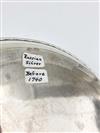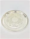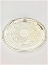 RUSSIAN SILVER (84-FINE) CIRCULAR SALVER, 18th-19th century. Punched floral and leafy decoration. Maker unknown. D: 8 1/2 in. Wt. 7.8 troy oz. Property from the Estate of Erich G. Holzapfel, Washington, DCEstimate $150-250