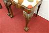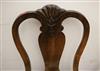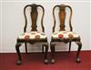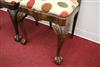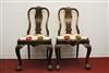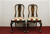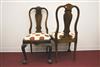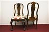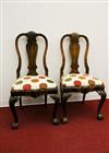 SET EIGHT QUEEN ANNE/CHIPPENDALE TRANSITIONAL STYLE FIGURED WALNUT DINING CHAIRS. Shell-carved crests over vasiform splats; balloon shape slip seats covered in dot pattern fabric; cabriole legs with carved ball-and-claw feet $400-600