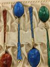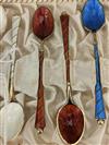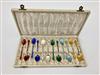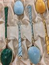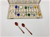 SET 12 DANISH STERLING AND ENAMEL DEMITASSE SPOONS, IN FITTED PRESENTATION BOX. Pair of spoons of each of six different colors of enamel. Wt. Property from the Estate of Erich G. Holzapfel, Washington, DCEstimate $100-150