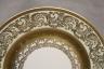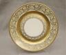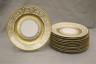 SET ELEVEN WHEELING CO. (W.Va) GILT-DECORATED CREAM COLOR PORCELAIN SERVICE PLATES early 20th century Elaborate gold scroll work motifs. D: 11". $200-300