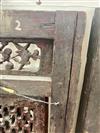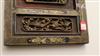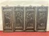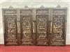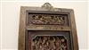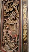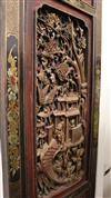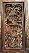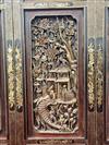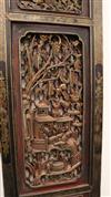 SET FOUR 19TH CENTURY CHINESE CARVED AND PAINTED WOODEN PANELS. Each pierced and carved with scenes of figures in pavilion landscapes; red, black and gilt decoration - Each, 37 3/4 in. x 15 1/4 in.Estimate $600-800