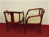 SET FOUR MID-CENTURY MODERN WALNUT OPEN-ARM CHAIRS, IN LOT WITH CLOSELY SIMILAR OPEN-ARM CHAIR. All chairs with neutral color fabric-covered slip seatsEstimate $200-300