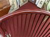 SET NINE STENDIG MID-CENTURY MODERN MAROON LACQUERED WOOD DINING CHAIRS, Retaining original Stendig upholstery and paper labels. Designed by Allen Davis in 1983 H: 37 in. W: 22 in.Estimate $800-1,200
