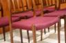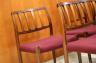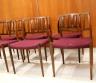 SET OF SIX DANISH MODERN ROSEWOOD DINING SIDE CHAIRS BY J.L. MOLLER (STAMPED) Openwork backs; fabric covered seats. $300-400