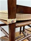 SET SIX FRENCH COUNTRY FRUITWOOD RUSH-SEAT SIDECHAIRS. Pierced splats; tie-on plaid fabric covered seat cushionsEstimate $250-350