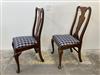 SET TWELVE QUEEN ANNE STYLE MAHOGANY SLIP-SEAT DINING CHAIRS. Shaped back with vasiform splats; seats covered with navy and cream plaid fabric over horsehairsEstimate $800-1,200