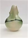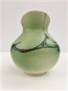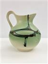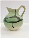 SIGNED ARTISAN-CRAFTED ART POTTERY PITCHER. Abstract decoration on shaded pale green ground; H: 9 1/2". Incised signature under base.Estimate $50-100