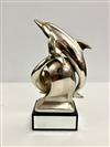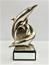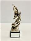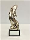 SIGNED GIULIANO OTTAVIANI ITALIAN CONTEMPORARY SILVER (800-FINE) CLAD METAL SCULPTURE MODEL AS PAIR DOLPHINS. Numbered 1048. On mirror paneled black rectangular marble base. H: 14 1/2".Estimate $200-300