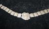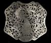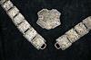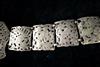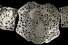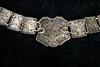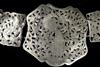 SOUTH ASIAN SILVERPLATED TRIBAL BELT WITH PEACOCK MOTIF. (For repair) 16 articulated, rectangular open-work silverplated links are connected to a large central medallion, all with peacock motif. This is a common feature of traditional jewelry from China and some parts of Southeast Asia. length: 31 inches (see photos) $100-150