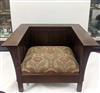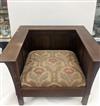 STICKLEY CO. MISSION OAK BOX STYLE ARMCHAIR WITH FLORAL PATTERN SEAT CUSHION. late 20th century. - H: 29 in.; W: 42 1/2 in.; D: 29 in.Estimate $200-300