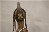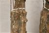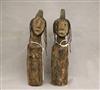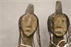 SUDANESE NILOTIC ETHNIC GROUP DINKA DOLLS. These dolls are crafted by the Dinka people, a Nilotic ethnic group primarily residing in South Sudan. They are typically hand-carved from wood and often adorned with beads, representing hair or other decorative elements. Dinka dolls are traditionally given by young men to their future wives and are carried by the women, symbolizing future children and fertility. They are also used by girls for play and to learn about womanhood within the Dinka culture. - Height: 12 inches. $150-270