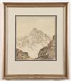 SWISS SCHOOL (Mid-20th Century). The Swiss Alps, Watercolor on paper. Signed "EYHOFF" lower right hand. Framed. Not examined out of frame. - 8" x 8"; Frame: 15" x 13".Estimate $120-150
