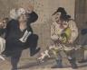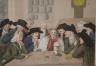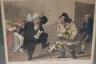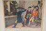 Set of Six framed British satirical prints from the late 18th and early 19th centuries, specifically the "Golden Age" of caricature. These hand-colored etchings served as a primary medium for social and political critique, capturing the boisterous and often unrefined realities of British life. Highlights from this collection include the iconic 'John Bull'—a personification of England as a gluttonous yet earnest country squire—as well as allegorical scenes of bear-baiting, likely symbolizing the era’s diplomatic tensions with Russia. Other plates satirize Regency-era vices, depicting tavern life and the inevitable physical tolls of excess, such as gout.
