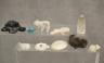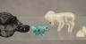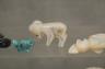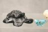 Artists craft these fetishes from diverse natural materials, including stones like turquoise and jet, or organic elements such as mother-of-pearl, antler, and bone. Many figures are adorned with "bundles" of coral or shell tied to the back as offerings to the spirit within. Length of Black Turtle 2 inches $100-150