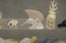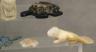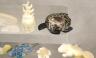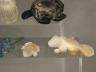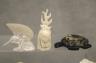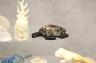 Artists craft these fetishes from diverse natural materials, including stones like turquoise and jet, or organic elements such as mother-of-pearl, antler, and bone. Many figures are adorned with "bundles" of coral or shell tied to the back as offerings to the spirit within. Length of Dark Turtle 1.75 inches $100-150