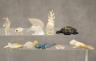 TEN ZUNI INTRICATELY CARVED MEDICINE FETISHES For over a millennium, the A:Shiwi (Zuni) have carved animal fetishes to honor the "medicine" or natural traits of wildlife, serving as focal points for personal growth and spiritual connection. These objects are treated with deep respect, as the true value lies in the indwelling spirit rather than the physical carving itself. While strict protocols govern ceremonial items, non-ceremonial fetishes are widely used for reflection.