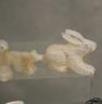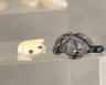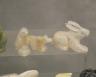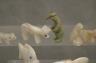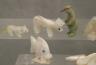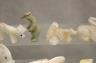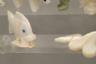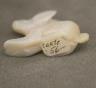 Artists craft these fetishes from diverse natural materials, including stones like turquoise and jet, or organic elements such as mother-of-pearl, antler, and bone. Many figures are adorned with "bundles" of coral or shell tied to the back as offerings to the spirit within. Height of Green Bear 1.5 inches $100-150