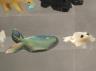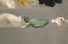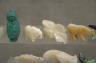 Artists craft these fetishes from diverse natural materials, including stones like turquoise and jet, or organic elements such as mother-of-pearl, antler, and bone. Many figures are adorned with "bundles" of coral or shell tied to the back as offerings to the spirit within. Height of Turquoise American Indian 1.5 inches $100-150