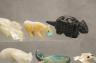 NOTE: Several carvings within this set feature the artists' signatures or initials, including specific pieces signed by the artist an artist with the initials R.L. and Robert Bellarmine Kokuluk (1952-2018, who is from King Island, Alaska).