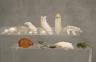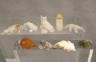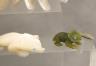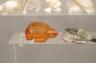Artists craft these fetishes from diverse natural materials, including stones like turquoise and jet, or organic elements such as mother-of-pearl, antler, and bone. Many figures are adorned with "bundles" of coral or shell tied to the back as offerings to the spirit within. Length of Amber Turtle 1.25 inches $100-150