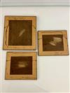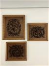 THREE 19TH CENTURY FRENCH FINELY CARVED WOODEN PANELS. Each carved in high relief with cluster of instruments centered by floral garlands and ribbons with bow knots. Pair, 8 1/4" x 9 5/8"; larger, 11 1/2" x 10 1/4". Framed alike. Estimate $150-250