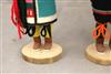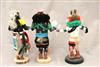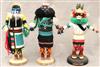 THREE KACHINA DOLLS FROM PUEBLO NATIVE TRIBES PRIMARILY THE HOPI AND ZUNI. Two of the dolls are signed by BEN SECIWA. Set of three Kachina Dolls (or Katsina dolls or Qatsina dolls) from the Pueblo Native tribes primarily the Hopi and Zuni. They are carved decorated figures that represent the spiritual beings, or Kachinas (Katsinam), who act as messengers between humans and the gods. Traditionally, these dolls are carved by male family members (usually from cottonwood root) and given to young girls and new brides to educate them about the hundreds of different Kachinas, their masks, and their ceremonial functions. The dolls represent spirit beings who control natural forces like rain, fertility, and harvests, and who also serve as moral guides and disciplinarians.