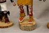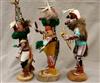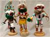 THREE KACHINA DOLLS FROM PUEBLO NATIVE TRIBES PRIMARILY THE HOPI AND ZUNI. Set of three Kachina Dolls (or Katsina dolls or Qatsina dolls) from the Pueblo Native tribes primarily the Hopi and Zuni. They are carved decorated figures that represent the spiritual beings, or Kachinas (Katsinam), who act as messengers between humans and the gods. Traditionally, these dolls are carved by male family members (usually from cottonwood root) and given to young girls and new brides to educate them about the hundreds of different Kachinas, their masks, and their ceremonial functions. The dolls represent spirit beings who control natural forces like rain, fertility, and harvests, and who also serve as moral guides and disciplinarians.