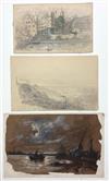 THREE LATE 19TH CENTURY CONTINENTAL DRAWINGS. Late 19th century drawings (two pencil drawing one Gouache) acquired in Vienna in 1918 at the Dorotheum Auction House sale of the estates of Hans Wilt, Adolf Kaufmann, Hans Dvorak and Carl Karger. Unframed. - Size: 5 x 9 in. Estimate $200-300