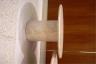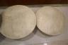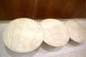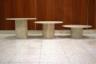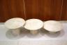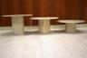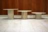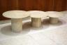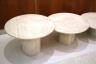 THREE MODERN GRADUATED STRIATED CREAM COLOR STONE "MUSHROOM" TABLESTallest, H: 15 1/4". Top, D: 23 1/2". $200-300