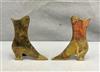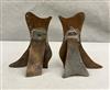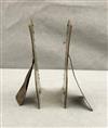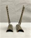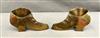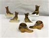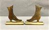 THREE PAIRS BRASS SHOE FORM TABLE-TOP ORNAMENTS. 19th century. Various styles of high-button lady's shoes. Tallest, height: 5".$100-150