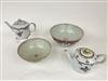 THREE PIECES 18TH-19TH CENTURY CHINESE EXPORT PORCELAIN. Two graduated bowls and a cylindrical teapots. All with floral decoration. Together with a Vista Allegra teapot - Larger bowl, D: 11 1/8".Estimate $100-200 Imperfections.