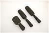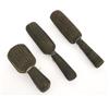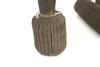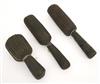 THREE SOLOMON ISLANDS CARVED WOODEN TAPA BARK BEATERS, Mid 20th century. Set of three patinated hand-carved, used, and decorated "Tapa beaters" from the Western Province (Gizo area) in the Solomon Islands. Tapa is a kind of bark cloth that is made in the South Pacific Islands, mainly Tonga, Samoa, and Fiji, but also as far afield as Hawaii and New Zealand. Tapa was introduced to the western world in the late 18th century by Captain Cook's first expedition, where it was collected under the direction of Joseph Banks and brought to Europe. - Longest tapa beater is 13 inches. Estimate $120-160
