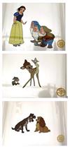 THREE WALT DISNEY COMPANY LIMITED EDITION SERIGRAPH ANIMATION CELS. Cels of Bambi Thumper, Lady and the Tramp, and Snow White and the Seven Dwarfs. The cels include a color background (which is not attached to the cel). Unframed. . Estimate $120-220