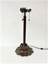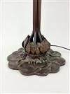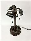 TIFFANY STYLE ART NOUVEAU-INSPIRED BRONZED TABLE LAMP BASE. Cast plant motif foot, three-light. - H: 25 1/2 in.Estimate $100-150