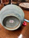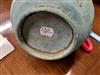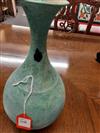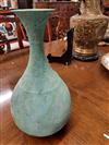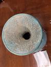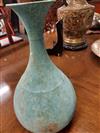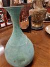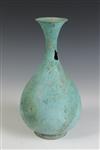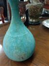 TURQUOISE PATINATED METAL DROP-SHAPE WINE VESSEL.