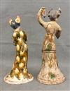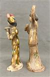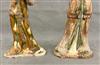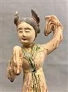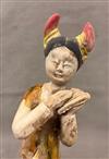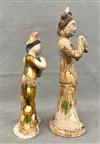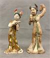 TWO CHINESE TANG POTTERY FIGURES OF FEMALE MUSICIANS. Sancai glaze. - Taller, H: 11 1/2 in.$100-150