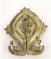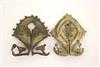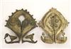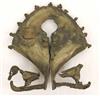 TWO INDONESIAN SUMBA ISLAND MAMULI EAR ORNAMENTS, Early-to-mid 20th century. Metal (likely coin silver) patinated incised and decorated ear ornaments or pendants known as Mamuli. These ornaments known as Mamuli play an essential role in the elaborate ceremonial gift exchanges practiced on important occasions by the people of Sumba Island in eastern Indonesia. In earlier times, when the Sumbanese practiced artificial elongation of the earlobes, Mamuli were worn as ear ornaments, but nowadays they hang around the neck as pendants. In Sumbanese culture, precious metals are believed to be of celestial origin. The sun is made of gold and the moon and stars of silver. Signs of usage. - Each one approximately 2.75 inches (height). Estimate $80-120